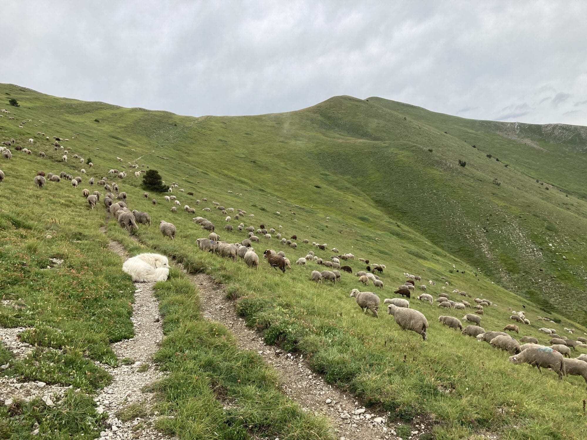 Pratiquement tous les troupeaux de brebis et de chèvres sont protégés par des chiens de protection, donc si vous randonnez dans un espace pastoral et observez des moutons ou des chèvres, il est probable que des patous y soient aussi.